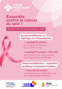 À l’occasion d’Octobre Rose, mois international de sensibilisation au dépistage du cancer du sein, le Centre Hospitalier de Laval propose plusieurs temps d’information, de prévention et de rencontre à destination du public et des professionnels.