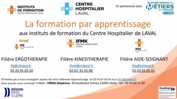 L’IFAS du CH LAVAL, en partenariat avec la Chambre des Métiers et de l'Artisanat de Mayenne, propose, dès la rentrée prochaine, la formation préparant au diplôme d'état d'aide-soignant par alternance.