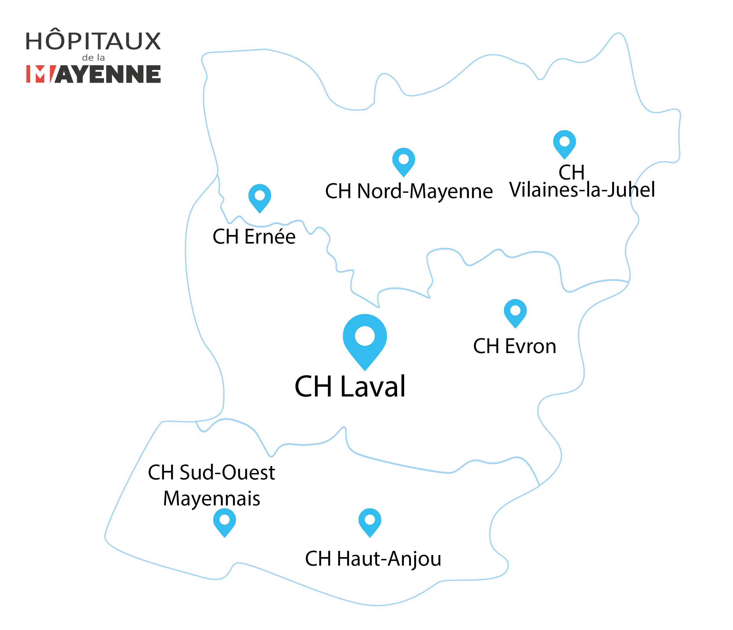 Le Groupement Hospitalier de Territoire (GHT) de la Mayenne et du Haut-Anjou regroupe les 7 hôpitaux publics mayennais. Il couvre l’ensemble du département et dessert un bassin de population de 330 000 habitants. Le CH de Laval est l’établissement support du GHT.