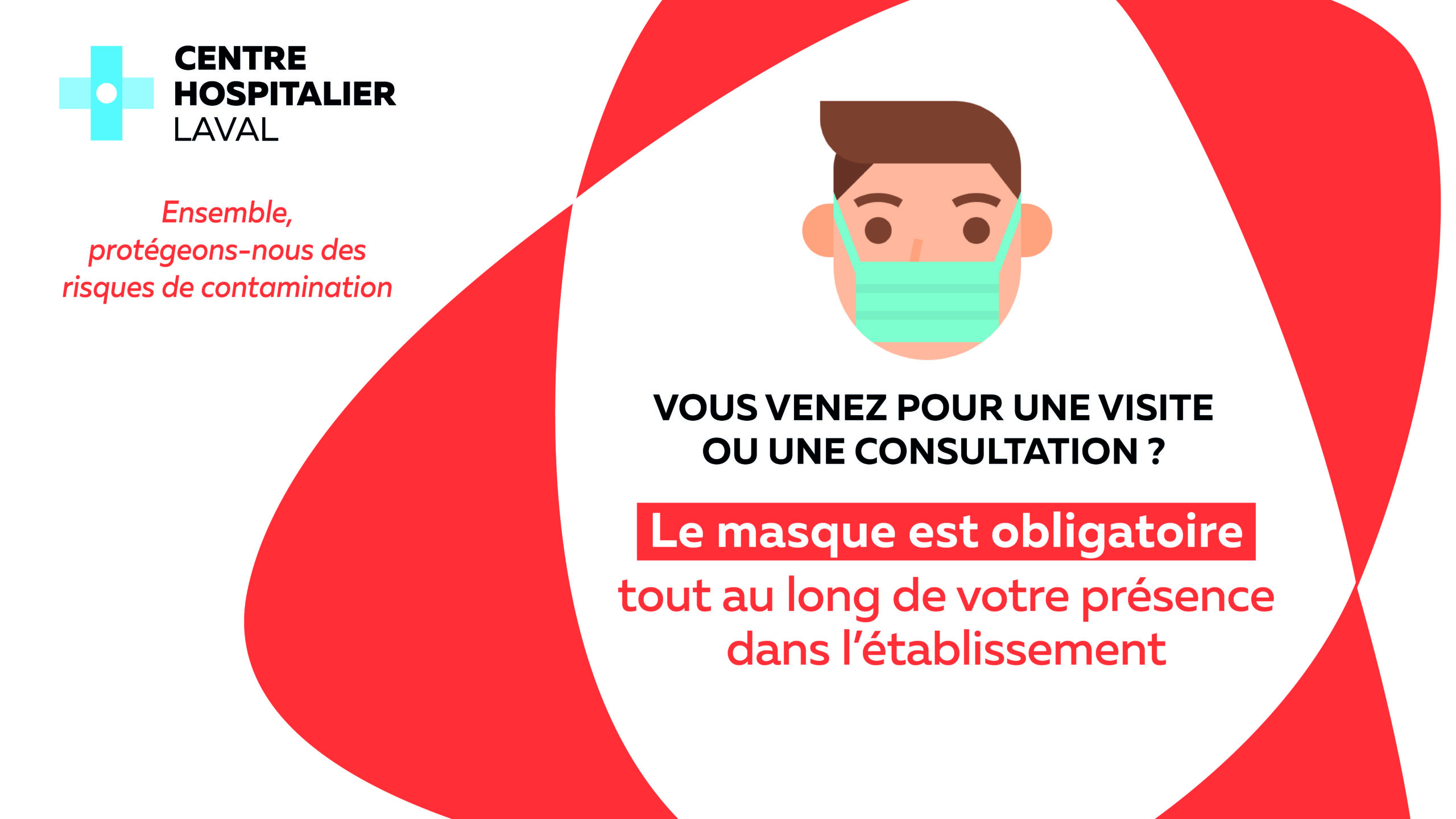 En raison de la recrudescence de la grippe, le CH de Laval rend le port du masque obligatoire pour tous dans les bâtiments accueillant des patients et résidents. Merci de respecter également les gestes barrières et de reporter votre visite en cas de symptômes.