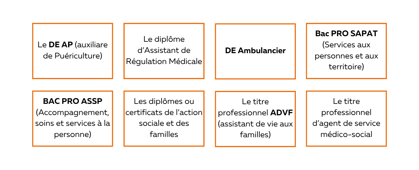- Sous réserve d’être admis à suivre la formation, des équivalences de compétences, de blocs de compétences ou des allégements partiels ou complets de certains modules de formation sont accordées aux élèves titulaires des titres ou diplômes suivants :