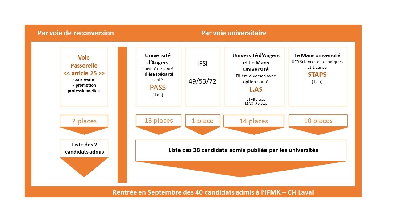 A ce titre, L’IFMK du CH LAVAL peut recevoir deux (2) étudiants uniquement sous statut de la PROMOTION PROFESSIONNELLE sur la totalité du parcours de formation