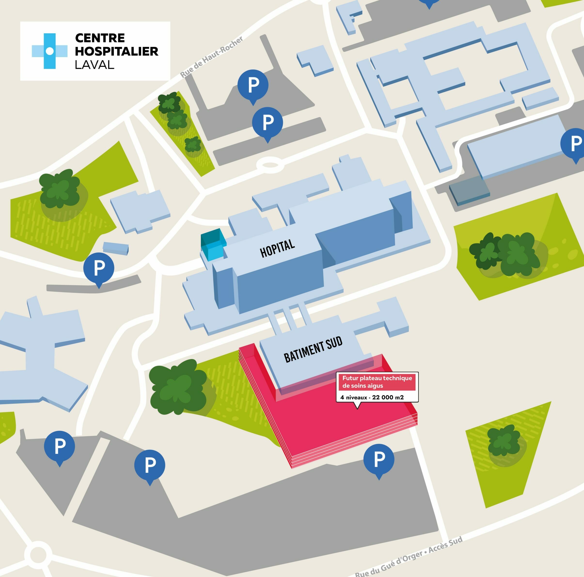 Le CH de Laval s’est engagé dans une démarche de modernisation de ses bâtiments pour mieux répondre aux besoins de santé des Mayennais et des Lavallois, améliorer les conditions d’accueil des patients, des consultants et des visiteurs, et les conditions de travail des professionnels qui exercent au quotidien. Ce programme immobilier est la traduction du projet médico-soignant de l’établissement.